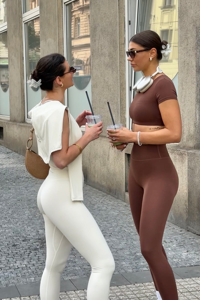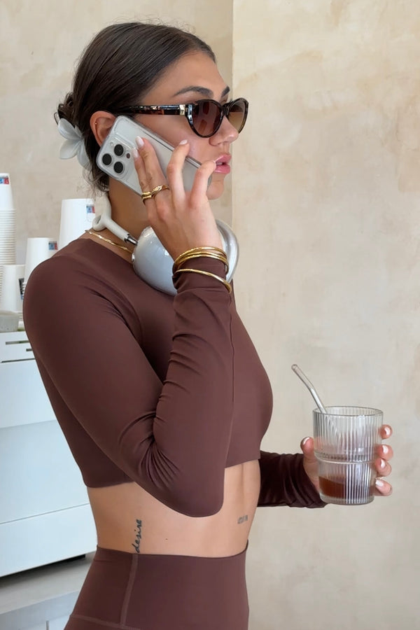 Long Sleeve Crop top s vnitřní podprsenkou SAND